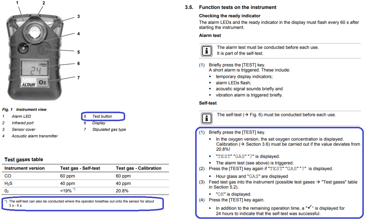 Instructions for checking Altair O2 senor before use
